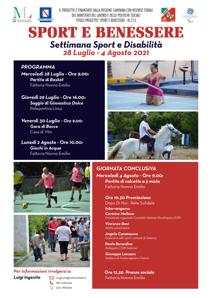 Hanno avuto inizio Mercoledì 28 Luglio le attività sportive della “Settimana Sport e Disabilità” che si svolgeranno presso la Fattoria Nonno Emilio, la Polisportiva Linus, la Comunità Alloggio “Casa di Vito” e il Co-Housing “Dopo Di Noi” e si concluderanno Mercoledì 4 Agosto con la premiazione dei partecipanti e il pranzo sociale alla Fattoria Nonno Emilio.