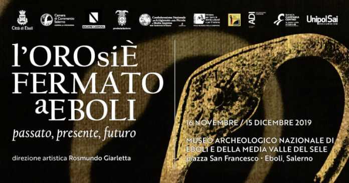 Il Comune di Eboli, la Camera di Commercio di Salerno e la CNA Salerno presentano la mostra internazionale di artigianato orafo e design “l’ORO si E’ FERMATO a EBOLI” presso il Museo Archeologico Nazionale di Eboli e della Media Valle del Sele con ingresso gratuito.