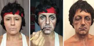 Stiamo parlando di una pittrice e truccatrice di talento che unisce la sua passione per l’arte a quella del teatro, del cinema e della musica per realizzare opere a dir poco spettacolari. La tela scelta dalla donna è il suo camaleontico viso che si trasforma, di volta in volta, nei personaggi più amati dal pubblico. Da Rambo, a Rocky Balboa, passando per Jessica Fletcher e molti altri, Lucia Pittalis ha davvero stupito tutti con il suo incredibile progetto artistico.