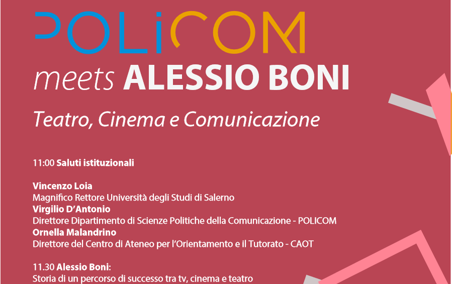 Venerdì 7 febbraio, alle ore 11:00 in Teatro di Ateneo, il Dipartimento di Scienze Politiche e della Comunicazione ospita ALESSIO BONI, affermato attore di cinema, teatro e televisione.