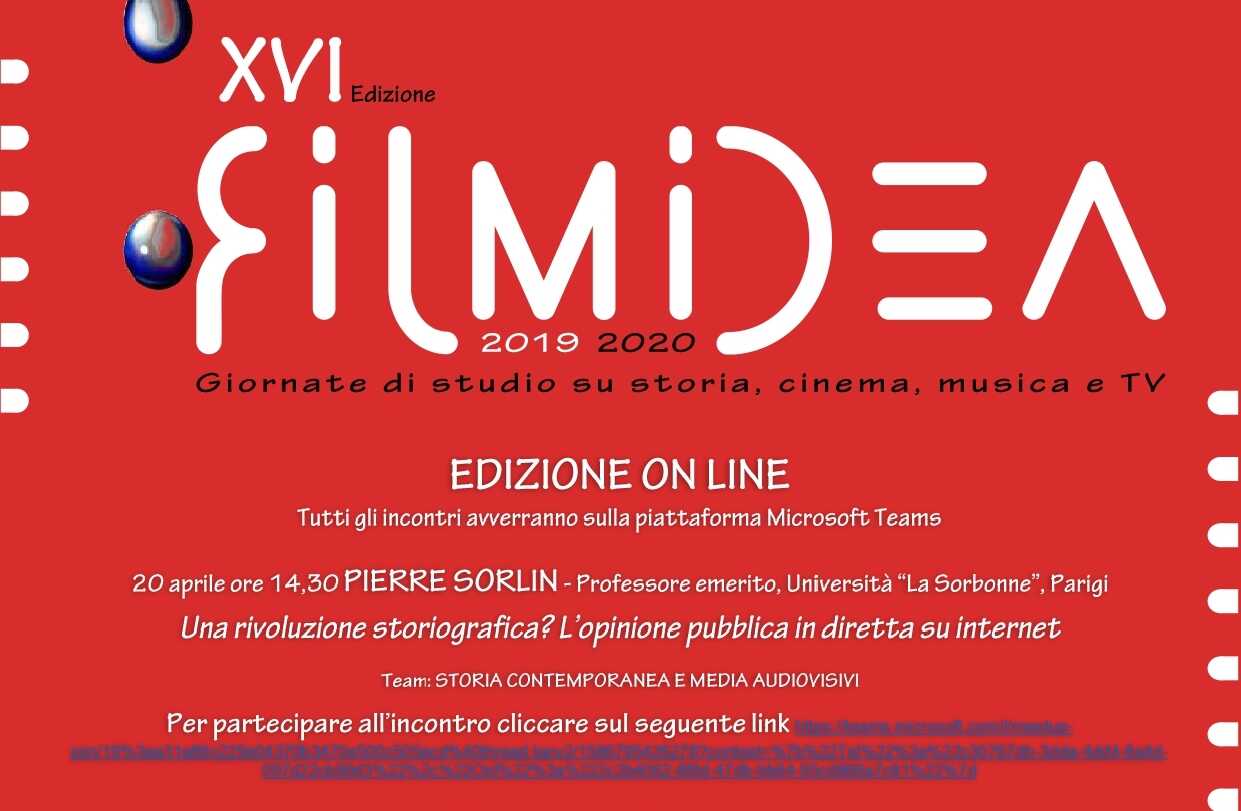 Si parte lunedì 20 aprile 2020, alle ore 14.30, con PIERRE SORLIN – Professore emerito, Università “La Sorbonne” e il talk dal titolo “Una rivoluzione storiografica? L’opinione pubblica in diretta su internet”.