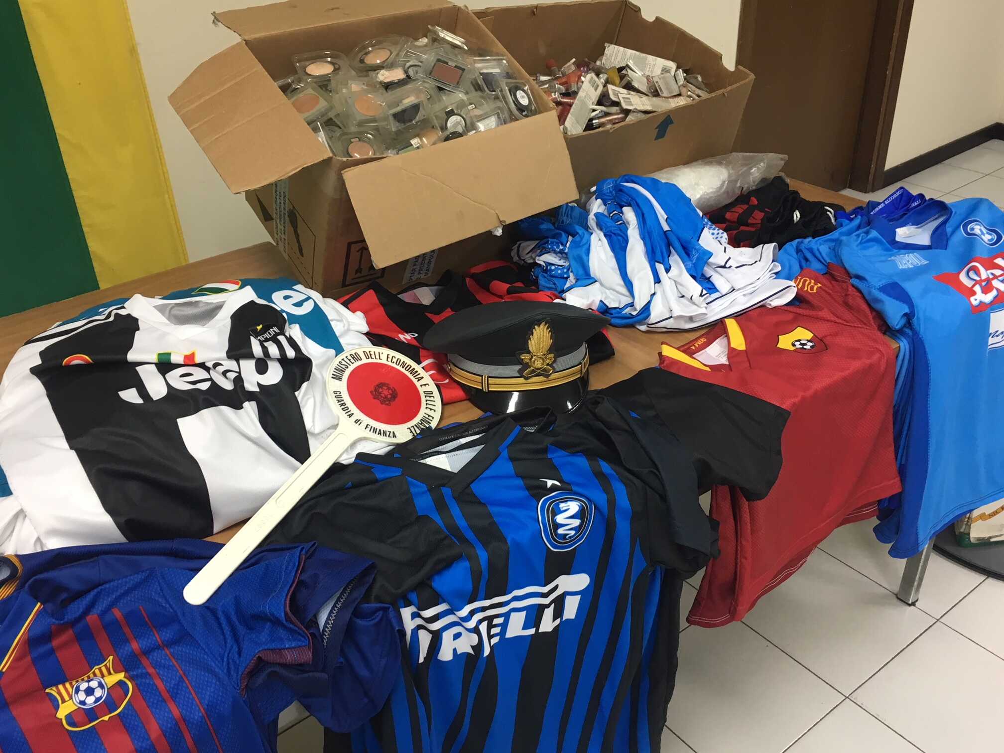 Un cittadino italiano è stato pizzicato mentre esponeva in vendita 85 maglie contraffatte di squadre di calcio di Serie A e del campionato spagnolo: per lui è scattata la denuncia in stato di libertà per il reato di commercio di prodotti con segni falsi. La merce è stata sequestrata.