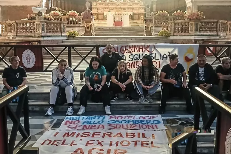 Una ventina di mamme ha occupato dalle prime ore di oggi il Duomo di Napoli in segno di protesta contro l’imminente sgombero dell’ex Motel Agip, l’edificio di Secondigliano che ospita le loro famiglie da anni. La struttura, di proprietà del Comune di Napoli, è considerata fatiscente e destinata all’abbattimento, con lo sgombero fissato per l’8 ottobre. Le donne, sedute in segno di protesta davanti all’altare, chiedono che le promesse dell’amministrazione comunale di trovare soluzioni abitative alternative vengano mantenute.