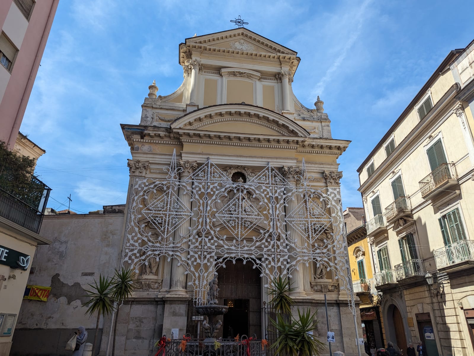 “La facciata principale, per come oggi la vediamo, risale alla seconda metà del 1700. Sulla facciata stessa compare una data specifica: 1787. I lavori di costruzione dell’edificio risalgono invece al 1612 – 1615. Successivamente, nella prima metà del ‘700, furono avviati gli interventi di abbellimento che portarono alla realizzazione degli altari, del cassettonato e degli affreschi all’interno. Negli anni successivi, è stata evidentemente ripresa anche la facciata principale, cha ha assunto l’impianto attuale. Si tratta, come è evidente, di una straordinaria opera d’arte di stile tardo barocco, abbellita da stucchi, bassorilievi, colonne e lesene e sulla quale spiccano le due bellissime statue allegoriche della Pudicizia e della Speranza. Sul portale si trova infine il bellissimo bassorilievo della Madonna del Carmelo col Bambino, seduta su di un nugolo di nuvole e nell’atto di essere incoronata da due angioletti. L’intervento di restauro è importante anzitutto per garantire che tutto questo splendore di arte resista al tempo. Ma c’è, evidentemente, anche una questione di sicurezza, della quale è fondamentale tenere conto”.
