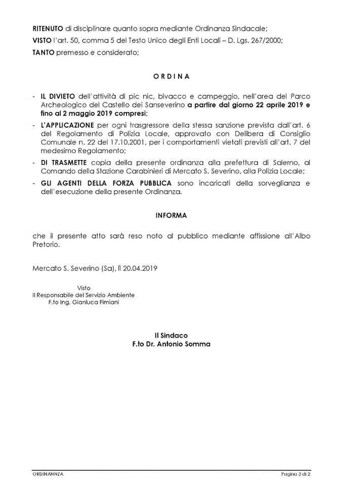Attenzione al giorno di Pasquetta, il sindaco Somma ha emesso l’ordinanza di divieto di pic nic e di bivacco nella zona del Parco Archeologico di Castello San Severino, l’ordinanza resterà in vigore fino al 2 maggio, quindi niente bivacco manco il 25 aprile e l’1 maggio.