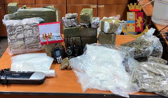 Ieri pomeriggio gli agenti della Squadra Mobile, durante un servizio di contrasto allo spaccio di sostanze stupefacenti, hanno fermato in via Miano un uomo a bordo di un’auto trovandolo in possesso di 30 panetti di hashish del peso di circa 20 kg; inoltre, presso la sua abitazione, hanno rinvenuto altri 12 panetti della stessa sostanza del peso di circa 1,2 kg, 7 bustine contenenti 380 grammi di cocaina, 4 buste con 1,4 kg circa di marijuana, un bilancino e diverso materiale per il confezionamento della droga.