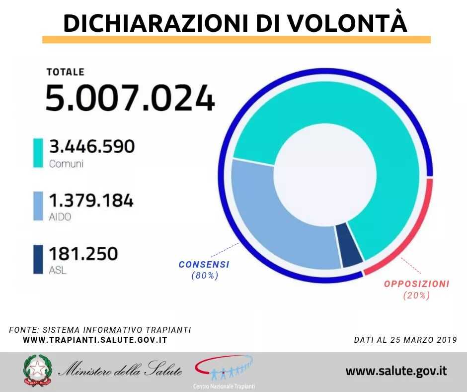Per il direttore del Centro nazionale trapianti Massimo Cardillo “5 milioni di dichiarazioni di volontà sono un numero importante ma quello su cui dobbiamo lavorare di più e meglio è aumentare i consensi alla donazione e ridurre il più possibile le opposizioni, specialmente nelle regioni del Sud dove le dichiarazioni negative sono sopra il 40%. È necessario informare i cittadinisull’importanza della donazione, perché sono i donatori a rendere possibili i trapianti e a permettere di salvare migliaia di vite ogni anno. Il nostro è un sistema trasparente ed efficace di cui ci si può fidare: vogliamo comunicarlo di più agli italiani con la nostra campagna ‘Diamo il meglio di noi’, a partire dalla prossima Giornata nazionale della donazione di domenica 14 aprile”.