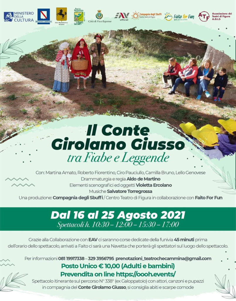 Con il patrocinio della Città di Vico Equense, La Città Metropolitana di Napoli, il Parco Regionale dei Monti Lattari, EAV Official, in collaborazione con l’associazione “Faito for Fun” e “La Compagnia degli Sbuffi” presentano “Il Girolamo Conte Giusso tra fiabe e leggende”, un evento – connubio tra arte e natura.