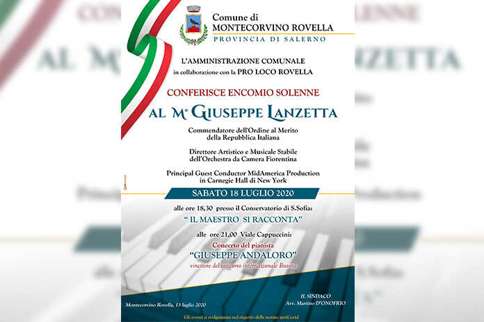 Alle ore 18.30, presso il conservatorio di Santa Sofia, l’amministrazione comunale di Montecorvino Rovella conferirà un encomio al maestro Giuseppe Lanzetta.
