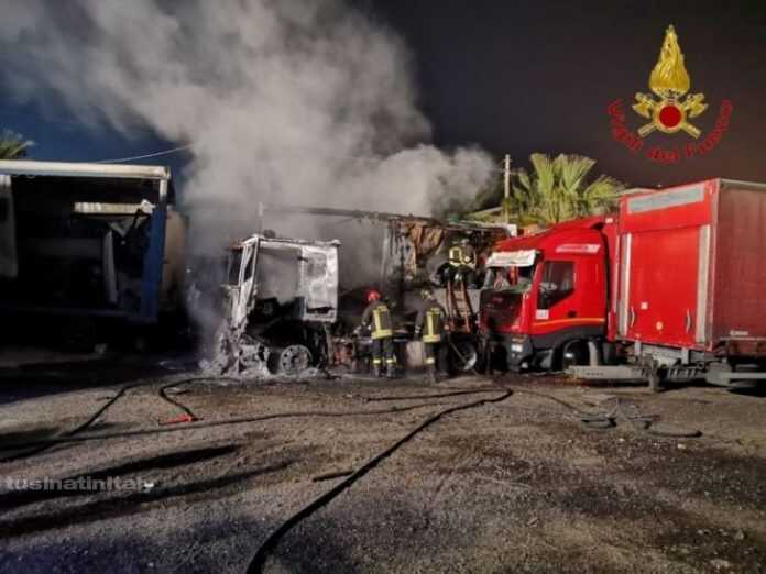 I Vigili del Fuoco di Avellino, subito prima della mezzanotte di ieri, sono intervenuti a Montoro, in Località San Felice per un incendio che si è sviluppato all’interno di un deposito di automezzi pesanti. La sala operativa del Comando di via Zigarelli ha inviato sul posto tre squadre, le quali hanno spento le fiamme che hanno interessato le motrici di tre tir, mettendo anche in sicurezza l’area. Sono in corso indagini da parte dei Carabinieri per l’incendio divampato.