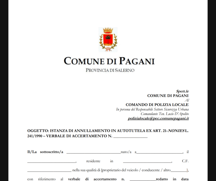 Numerosi cittadini di Pagani si sono ritrovati vittime delle cosiddette “multe fantasma”: sanzioni mai recapitate a casa, ma risultate comunque notificate, secondo quanto attestato dagli avvisi dei portalettere. Una situazione che ha generato rabbia e confusione tra i contribuenti, spesso ignari dell’esistenza della contravvenzione fino alla riceziàòcbv one di ingiunzioni o cartelle esattoriali.Per far fronte a questa criticità, L’albo pretorio del Comune di Pagani ha pubblicato, al numero 1024, poi modificato in 1032, un apposito modulo che consente ai cittadini coinvolti di presentare un’istanza in autotutela, richiedendo l’annullamento delle sanzioni mai effettivamente ricevute. Il documento modificato riporta nella parte finale due note in grassetto: “La presente istanza in autotutela non annulla automaticamente l’atto prodromico e le successive ingiunzioni. Si precisa altresì che la sospensione disposta dal Comune della durata di 6 mesi relativa all’esecuzione delle ingiunzioni di pagamento pervenute, decorre dalla data di notifica dei predetti atti. Il termine dei 30 giorni per l’impugnazione davanti al giudice di pace è un termine perentorio che non può essere sospeso da nessun ente, pertanto quest’ultimo decorre dalla data della notifica dell’ingiunzione”.