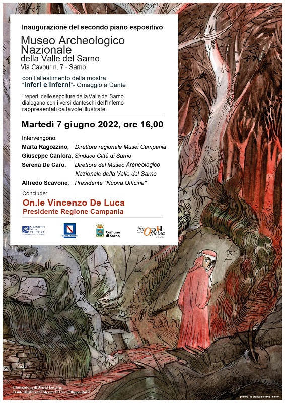I reperti, conservati finora nei depositi e provenienti nelle sepolture degli uomini e delle donne di rango vissute fra il IX e l’VIII secolo a.C., e gli “strappi” delle tombe praticati all’epoca degli scavi che restituiscono l’immagine del defunto così come è stato deposto, dialogano con le tavole illustrate dell’Inferno di Dante, pubblicate dalle principali case editrici italiane.