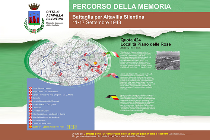 Alla realizzazione del Museo si affiancherà un “percorso della memoria” con il quale evidenziare e far conoscere, attraverso pannelli descrittivi multilingua contenenti foto e documentazioni storiche, i luoghi degli eventi bellici coinvolti dall’11/9/1943 al 17/9/1943 nella Battaglia di Altavilla.