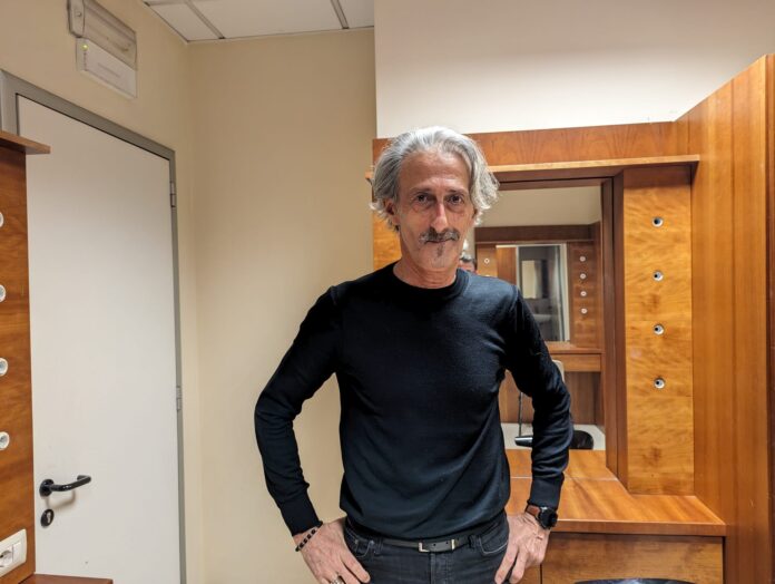 «Il teatro è in crisi ai tempi di Aristofane. Questa è la bellezza che rende le tinte forti dello spettacolo dal vivo. “Sagoma” è un monologo di circa 50 minuti, durante il quale questo attore, nel caso specifico sono io, sta facendo l’allestimento per uno spettacolo di cui non si saprà mai il nome. Fabio Pisano, che ha scritto questo testo, rappresenta una riflessione non solo sul teatro, che è di prima lettura, ma c’è una riflessione sull’uomo moderno, come sappiamo, sempre più bisognoso di essere online, condiviso, conosciuto, al di là della conoscenza. Questo è il punto chiave di questo testo, che questo attore si lamenta di essere stato sempre troppo riconosciuto al di là della conoscenza. La gente mi riconosce ma non mi conosce e quindi preso da una sorta di delirio, di follia, decido di mettere su questo spettacolo dove non voglio mai essere visto in viso, devo essere visto, appunto, in sagoma. Questo per dire che l’allegoria vuole significare che l’uomo moderno avrebbe bisogno più di essere conosciuto che non riconosciuto. La morale sulla sostanza di quello che fa, non applauso tout court».