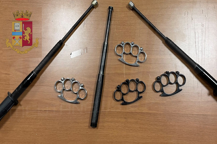 Sette minorenni sono stati bloccati dalla polizia a Napoli perchè trovati in possesso di 4 tirapugni e 3 manganelli telescopici; sono ritenuti responsabili di aver aggredito poco prima alcuni ragazzi i quali si sono rivolti agli agenti raccontando l’episodio avvenuto nel Chiostro di Santa Chiara nel centro della città.