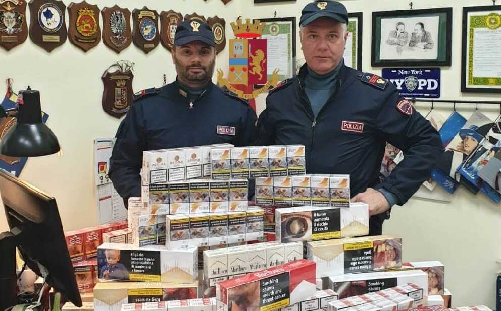 Il poliziotto ha chiesto l’intervento di una pattuglia per effettuare un controllo e, con i colleghi, ha accertato che le buste contenevano numerosi pacchetti di sigarette.