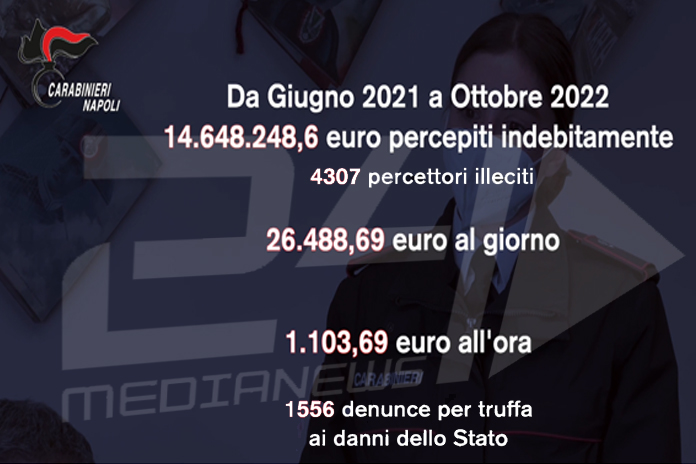 5.127.765,71 euro giugno/novembre 21 – 2441 le persone alle quali è stato revocato il beneficio su tutto il territorio della provincia partenopea, 716 denunciati per truffa ai danni dello Stato