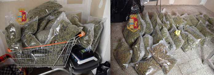 Ieri mattina gli agenti del Commissariato San Giovanni-Barra, durante un servizio di contrasto alle sostanze stupefacenti, con il supporto di personale dei Vigili del Fuoco hanno effettuato un controllo in via Ciccarelli all’interno di un garage di pertinenza di un ex convento dove hanno rinvenuto e sequestrato numerose buste con circa 25 kg di marijuana e 44 panetti di hashish del peso di circa 4,5 kg, due bilance di precisione e diverso materiale per il confezionamento della droga.