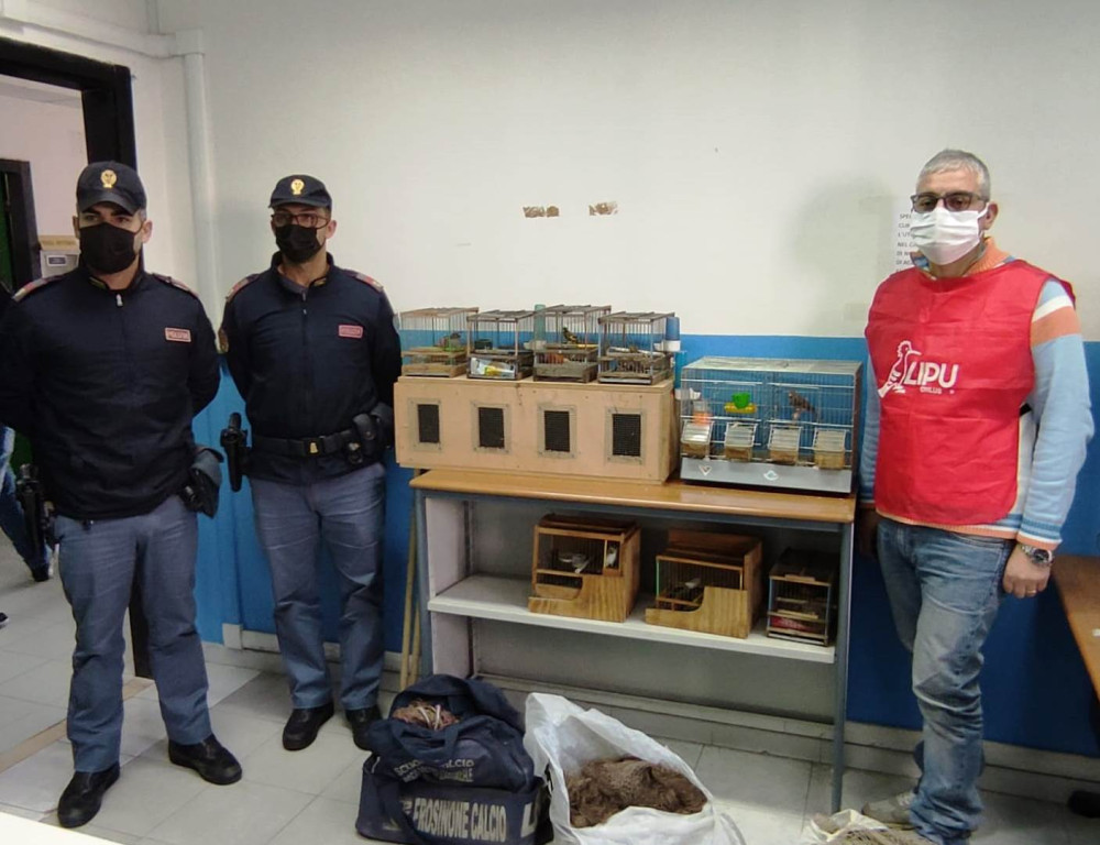 I poliziotti, con la collaborazione di personale della L.I.P.U. (Lega Italiana Protezione Uccelli), in via Nazionale a Boscotrecase hanno effettuato un controllo presso l’abitazione di un uomo dove hanno accertato che, all’interno di gabbie anguste e in pessime condizioni igieniche, vi erano 9 cardellini (specie protetta) e 2 canarini; inoltre, sono state rinvenute e sequestrate 8 reti da uccellagione complete di paleria e picchetti, 8 gabbie per uccelli e diversi arnesi atti allo scasso.
