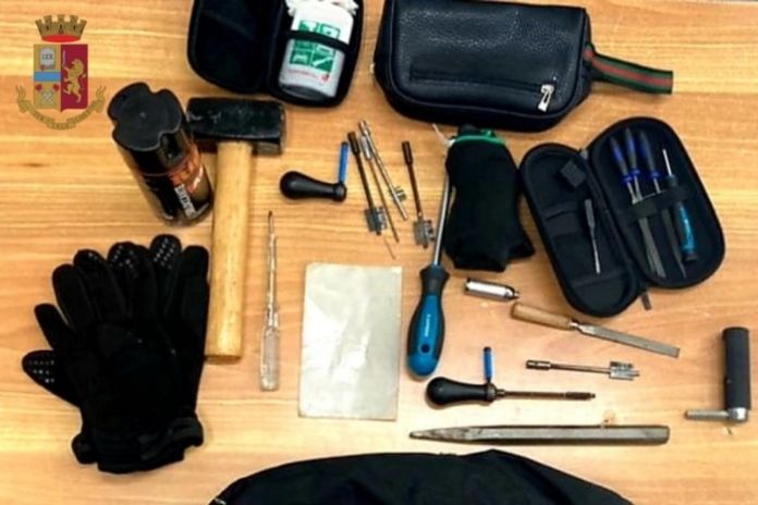 I poliziotti, una volta entrati nell’androne del palazzo, hanno sorpreso due uomini che stavano uscendo velocemente dal portone ed hanno bloccato uno di essi trovandolo in possesso di diversi arnesi atti allo scasso, mentre l’altro è riuscito a far perdere le proprie tracce.