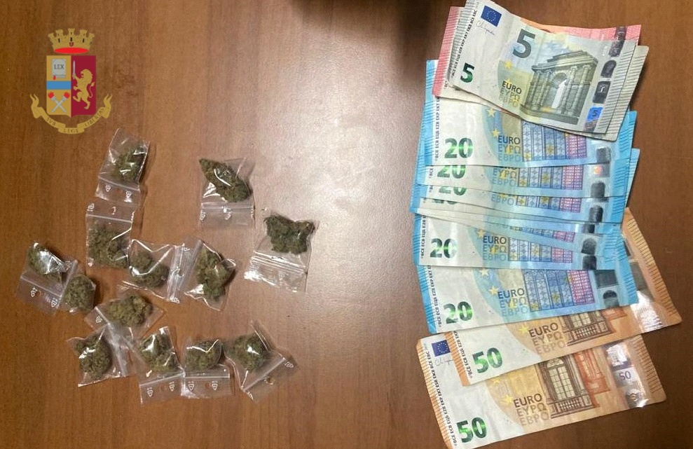 I poliziotti, dopo un breve inseguimento, hanno raggiunto e bloccato lo spacciatore trovandolo in possesso di 13 bustine contenenti circa 15 grammi di marijuana e 280 euro, mentre l’altro è riuscito a far perdere le sue tracce.