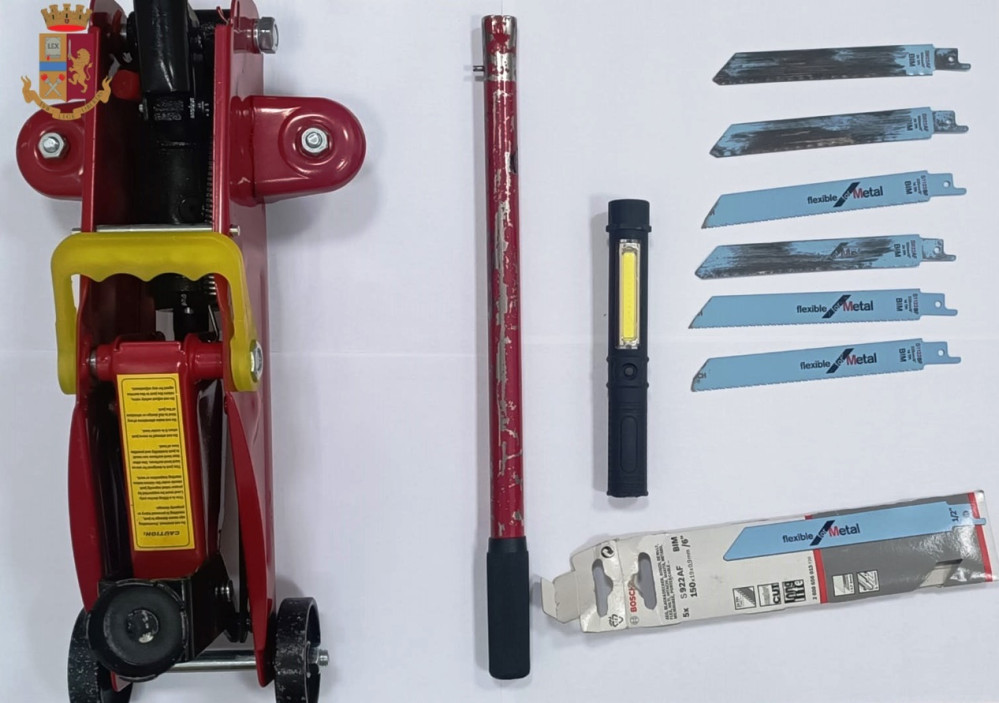 Gli operatori hanno rinvenuto nell’auto una torcia ricaricabile e 6 lame per seghetto a gattuccio; inoltre, hanno recuperato il crick utilizzato poco prima sulla macchina in sosta.