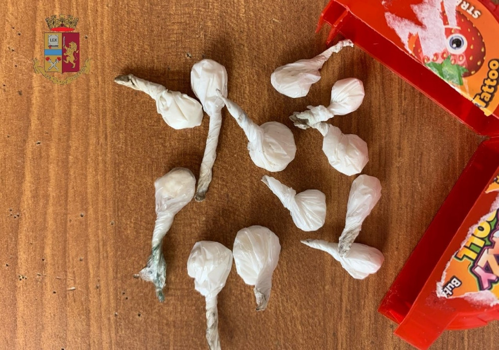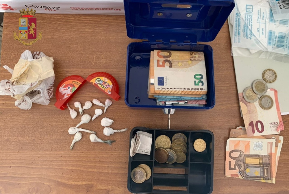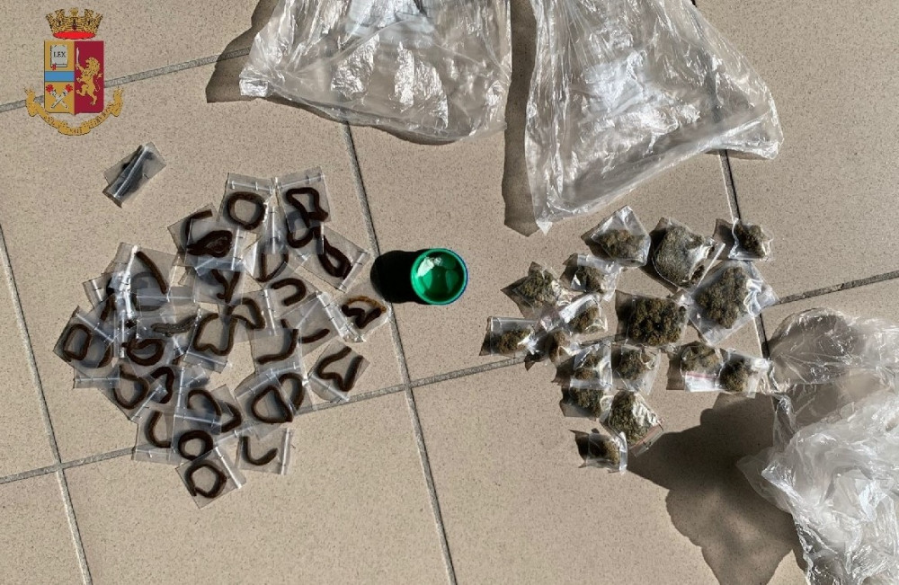 I poliziotti, giunti sul posto, hanno notato due uomini uscire dal locale contatori del palazzo che, alla loro vista, hanno tentato di eludere il controllo, ma sono stati raggiunti e trovati in possesso di una bustina contenente circa 0.4 grammi hashish; inoltre, gli agenti hanno rinvenuto nel vano contatore 37 bustine di hashish del peso di circa 36 grammi, 17 bustine di marijuana del peso di circa 15 grammi e 3 dosi di cocaina del peso di circa 0.3 grammi.
