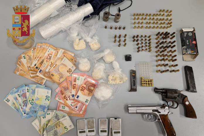 Gli operatori sono intervenuti e lo hanno identificato rinvenendo nell’abitazione 4 bilancini di precisione, diverso materiale per il confezionamento della droga, un cellulare, due chiavi di un’autovettura e 3435 euro; successivamente, hanno controllato anche l’auto dove hanno trovato 6 buste con circa 189 grammi di crack, un’altra busta contenente circa 63 grammi di cocaina, 145 cartucce di vario calibro, altre 5 cartucce a salve cal.357 e 2 pistole, di cui una con matricola abrasa e l’altra risultata smarrita nel 2017.