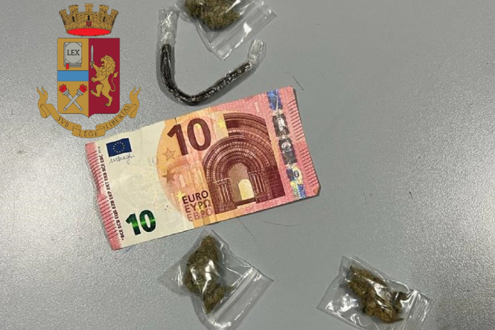 I poliziotti, dopo un breve inseguimento terminato in via Venezia, hanno raggiunto e, non senza difficoltà, bloccato lo spacciatore trovandolo in possesso di 5 bustine contenenti circa 6 grammi di marijuana, una stecca di hashish del peso di 1,6 grammi e 10 euro.