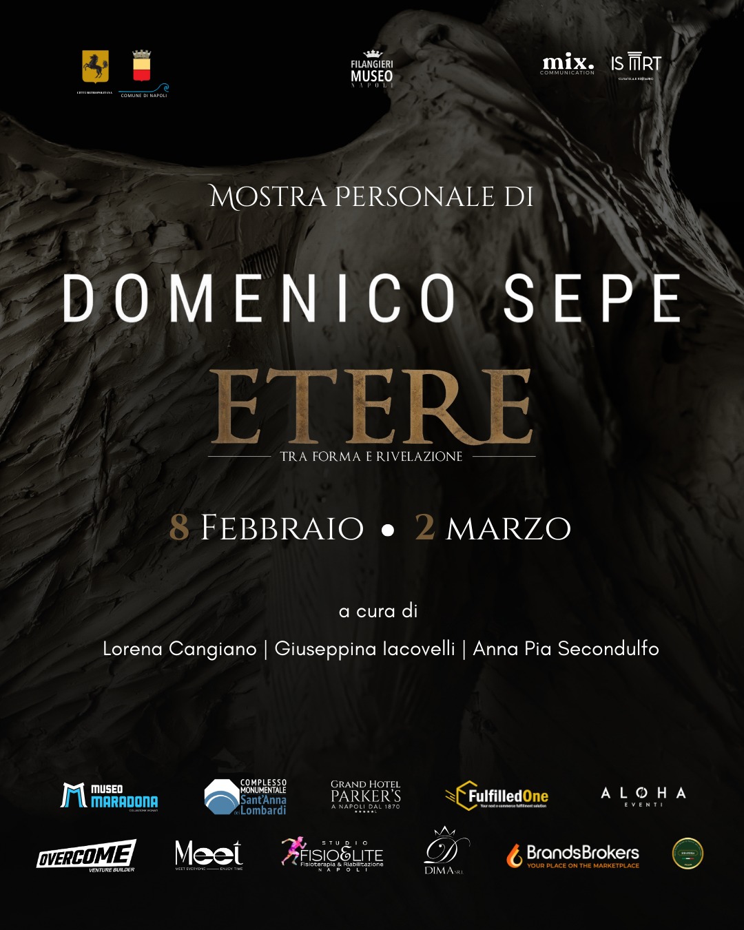 Nella giornata di domani alle ore 11:30 ci sarà la conferenza stampa e la presentazione della mostra d’arte “Etere. Tra forma e rivelazione” a firma del maestro Domenico Sepe.  Modera l’autore e produttore Rai Gino Aveta. Tra gli ospiti, anche i rappresentanti degli sponsor che hanno sostenuto l’evento. La mostra approda al Museo Civico Gaetano Filangieri di Napoli dall’8 febbraio all’1 marzo 2025. L’esposizione, a cura di Lorena Cangiano, Giuseppina Iacovelli e Anna Pia Secondulfo, prende il nome dall’inedito catalogo d’arte, un’epitome della produzione artistica di Sepe. Ideata in collaborazione con il presidente della commissione Cultura, Turismo e Attività Produttive del Comune di Napoli Luigi Carbone, IsArt e Mix Communication, con il patrocinio morale del Comune di Napoli e della Città Metropolitana di Napoli.