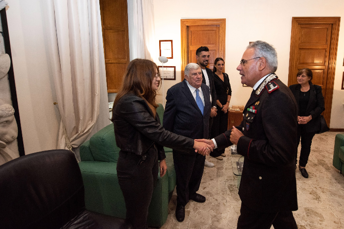 Questa mattina il Comandante Interregionale Carabinieri “Ogaden” Generale di Corpo di Armata Andrea Rispoli si è recato in visita presso la caserma Pastrengo, storica sede del Comando Provinciale Carabinieri di Napoli.Ad accoglierlo il Comandante Provinciale dei Carabinieri di Napoli, Generale di Brigata Enrico Scandone e una rappresentanza di militari della sede e dei comandi periferici.Durante l’incontro, cui hanno partecipato anche rappresentanze di tutti i reparti delle organizzazioni Mobile, Speciale e Forestale dell’Arma dei Carabinieri operanti nella provincia partenopea, il Generale Rispoli ha rivolto un sentito ringraziamento a tutti i Carabinieri impegnati nel difficile territorio del Comando Provinciale di Napoli.Un particolare plauso è stato espresso per la professionalità e l’abnegazione quotidianamente profusi nello svolgimento del servizio, con passione ed entusiasmo, e per gli importanti risultati ottenuti nell’azione di prevenzione e repressione dell’illegalità, in ogni sua forma.Nel corso dell’incontro il Generale Scandone, Comandante Provinciale Carabinieri di Napoli, ha descritto il delicato ed essenziale ruolo svolto dalle 99 Stazioni e Tenenze Carabinieri capillarmente distribuite in città e provincia, fondamentali presidi a tutela della civile convivenza e della legalità.Elencati i risultati ottenuti nel contrasto alla criminalità comune e organizzata, alla violenza di genere e alle truffe in danno di anziani. In evidenza i risultati delle inchieste compiute negli ultimi 12 mesi sul tema dell’indebita percezione del reddito di cittadinanza.Dopo l’incontro, il Generale Rispoli si è trattenuto con Alessandro D’Acquisto, fratello del M.O.V.M. Vice Brigadiere Salvo D’Acquisto e con i familiari di Mario Cerciello Rega, brigadiere M.O.V.C. caduto durante il servizio.