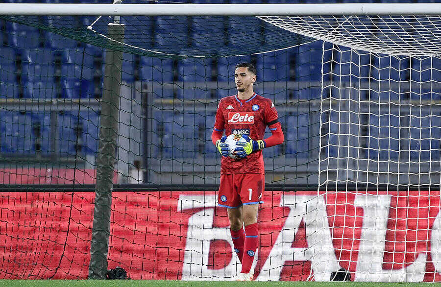 Napoli's goalkeeper Alex Meret in action during the Italy Cup Final soccer match at the Olimpico stadium in Rome, Italy, 17 June 2020. ANSA/ETTORE FERRARI