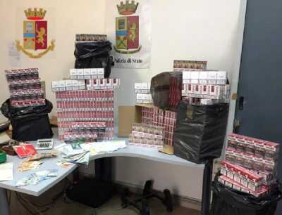 I poliziotti lo hanno raggiunto e bloccato trovandolo in possesso di 1050 euro, di tre cellulari e di un mazzo di chiavi di un deposito situato nello stesso stabile dove sono stati rinvenuti circa 50 kg di stecche di tabacchi lavorati esteri, privi del marchio dei Monopoli di Stato, diversi assegni e altri cellulari.