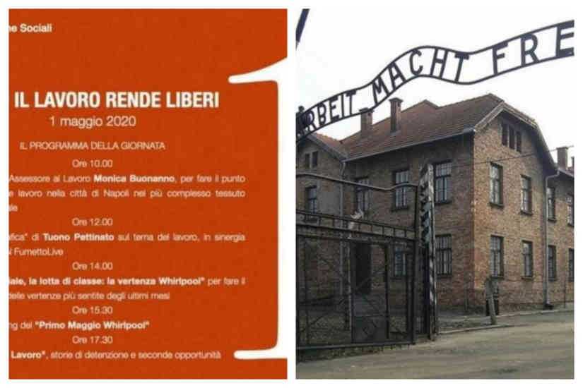 Speriamo sia la quarantena e quell’irrefrenabile voglia di libertà. E che non sia piuttosto il vuoto della Memoria. Quella appunto con la emme maiuscola. Se sui manifesti del Comune di Napoli per il primo maggio appare come slogan “Il lavoro rende liberi”. La stessa terribile scritta che i deportati ebrei vedevano appena arrivati nel campo di sterminio di Auschwitz, così come in altri lager. Un errore madornale quello dell’assessorato alle Politiche Sociali e al Lavoro, guidato da Monica Buonanno. Tanto che nella tarda serata di ieri si è cercato di correre ai ripari, sostituendo la locandina del programma con un’altra con su scritto “Il lavoro rende la dignità”.