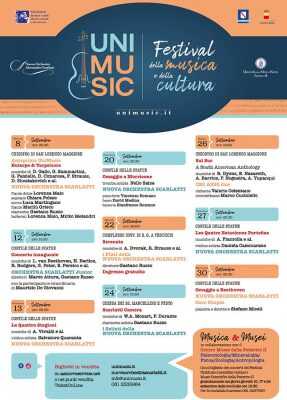 Martedì 8 settembre 2020 inizia la II Edizione di UniMusic Festival, ideato e realizzato dalla Nuova Orchestra Scarlatti in partnership con l’Università Federico II di Napoli, per ripartire insieme nel segno della musica, della cultura e della bellezza. Un mese di musica, tra l’8 e il 30 settembre, abbinata al fascino di location del centro storico di Napoli: San Lorenzo Maggiore, cuore millenario della città; lo splendore barocco di San Marcellino; il maestoso Cortile delle Statue, con il suo pantheon di uomini illustri; e un appuntamento musicale anche nella modernissima cittadella universitaria di San Giovanni a Teduccio.
