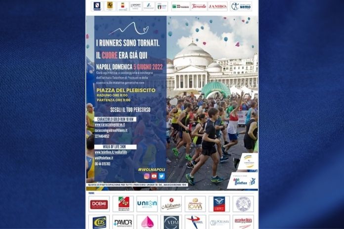 L’A.S.D. Napoli Sport Events, in collaborazione con la Fondazione Telethon e con il patrocinio della FIDAL Campania, del Comune di Napoli, dell’UNIVERSITA’ PARTHENOPE, del CONI, di SPORT E SALUTE, indice ed organizza il 4 e 5 giugno 2022 un evento sportivo unico nel suo genere, che prevede la contemporaneità di 2 manifestazioni podistiche conosciutissime e che da anni si svolgono nella città di Napoli: la 20° Caracciolo Gold Run (organizzata dalla NAPOLI SPORT EVENTS) gara agonistica FIDAL per Assoluti e Master, quest’anno sulla distanza di 10 km e la 9° Walk of Life (organizzata dalla Fondazione TELETHON), gara NON agonistica di 3 km.