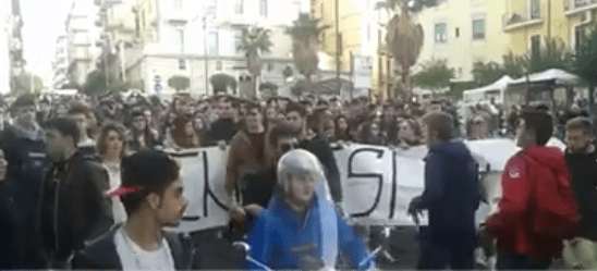 Si è svolto a Salerno il corteo organizzato dagli studenti dell’istituto tecnico Genovesi dopo la tragica vicenda consumatasi ieri. Un sedicenne accoltellato da un suo compagno, un altro in ospedale in fin di vita ed un altro arrestato. I ragazzi si sono mobilitati per manifestare contro la violenza e per dissociarsi da questo orribile atto. La marcia si protrarrà fin sotto il palazzo della Provincia ed insieme a loro sfilano anche gli alunni dell’Alfano, del Severi, del Da Procida, del Trani, del Sabatini, tutti uniti da un unico ideale comune di giustizia e di riscatto. Non sono presenti né i professori né il preside della scuola, in quanto la protesta non è stata autorizzata.
