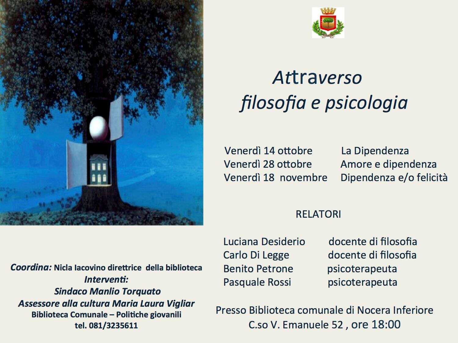 Il Comune ha disposto tre incontri programmati alla biblioteca per discutere di dipendenza. Seminari interattivi, attraverso filosofia e psicologia che si terranno a partire da domani 14 ottobre alle ore 18,00. Tema conduttore “Dipendenza”. Venerdì 28 ottobre “Amore e dipendenza”. Venerdì 18 novembre “Dipendenza e/o felicità”. Sono tre incontri sul tema della dipendenza, a cura di quattro relatori, psicoterapeuti di formazione diversa e docenti di filosofia che tratteranno argomenti secondo modalità che si trovano all’incrocio tra scienze umane e pensiero filosofico. All’incontro di domani si svolgerà il tema della “Dipendenza” e si indaga per ottenere un possibile sguardo su come oggi si possa pensare a un argomento quanto mai attuale che riguarda la questione delle dipendenze di vario tipo. Si tratta quindi di un momento interlocutorio aperto alla discussione con il pubblico presente. I relatori sono: Carlo Di Legge, docente di storia e filosofia e dirigente scolastico, ha collaborato con l’Università degli studi di Salerno per le cattedre di filosofia del linguaggio e di estetica; Luciana Desiderio, docente di storia e filosofia nei licei della provincia di Salerno ed esperta di dinamiche adolescenziali e strategie d’intervento educativo; Pasquale Rossi, psicologo clinico, psicoterapeuta, biologo, esperto nella conduzione di gruppi di terapia e di crescita personale; Benito Petrone, psicologo psicoterapeuta relazionale molto attivo nella cura delle dipendenze da sostanza, da gioco e nella sfera del disagio minorile. Interverranno il Sindaco Manlio Torquato e l’Assessore alla Cultura Maria Laura Vigliar. Coordina i seminari la Direttrice della Biblioteca Nicla Iacovino.
