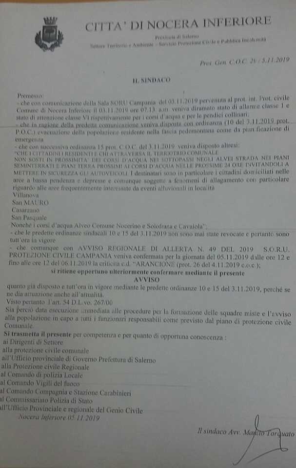 Home Territorio Nocera Inferiore Nocera Inferiore, Torquato ribadisce l’evacuazione nelle zone a rischio