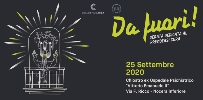 Venerdì 25 settembre 2020, presso il Chiostro dell’ex Ospedale Psichiatrico di Nocera Inferiore presso il Dipartimento Salute Mentale, in via F. Ricco, si terrà “DA FUORI! – serata dedicata al prendersi cura”.