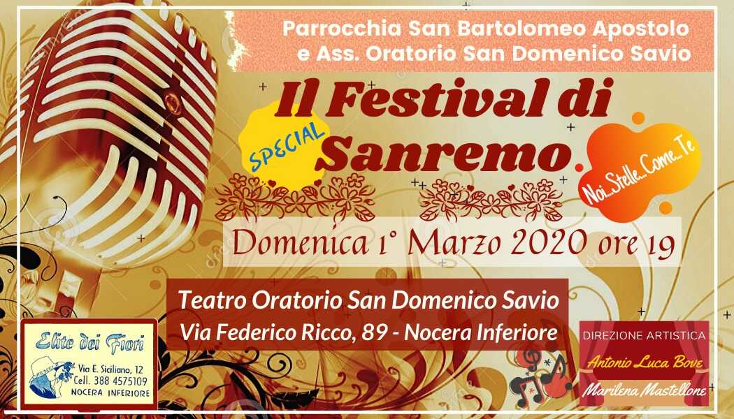 Confermato l’appuntamento di domani sera all’auditorium dell’Oratorio San Domenico Savio, organizzato dall’associazione dell’Oratorio e dalla Parrocchia di San Bartolomeo Apostolo. Uno speciale Festival di Sanremo, con la direzione artistica di Marilena Mastellone e Antonio Luca Bove.