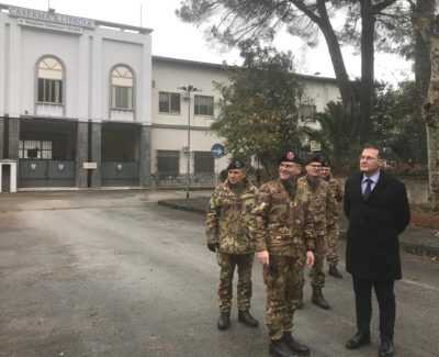 Il Questore della Camera dei Deputati Edmondo Cirielli ha svolto, questa mattina, una visita istituzionale all’interno della caserma “Libroia” di Nocera Inferiore (sede del 45esimo battaglione trasmissioni “Vulture” dell’Esercito italiano) che è stata inserita all’interno di “Caserme Verdi”. Si tratta di un progetto di ammodernamento tecnologico ed energetico che punta alla valorizzazione degli immobili della Difesa. Con l’onorevole Cirielli anche il primo cittadino Manlio Torquato. “Abbiamo raggiunto un importante risultato al termine di un iter burocratico davvero lungo che ha attraversato diversi Governi e legislature che – dichiara il parlamentare di Fratelli d’Italia – ha visto una proficua collaborazione tra il parlamento come espressione del territorio e il sindaco della più importante città dell’Agro. La caserma “Libroia” è da sempre un presidio di legalità che andava valorizzato e che va sostenuto sotto ogni punto di vista. Oggi ho incontrato uomini coraggiosi, servitori dello Stato che sono sempre in prima linea per garantire la nostra sicurezza e di cui non possiamo che essere orgogliosi”. Al termine delle visita istituzionale, l’onorevole Cirielli ha firmato sull’Albo d’Onore custodito nella caserma nocerina.
