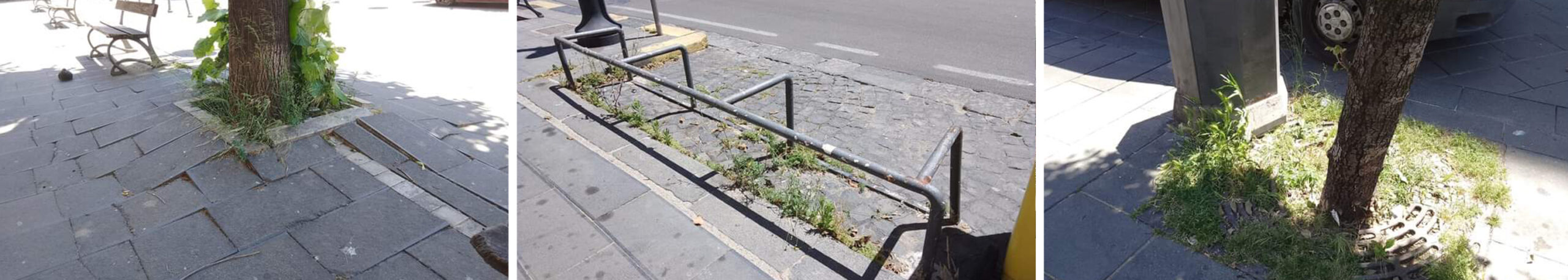 Il degrado urbano nella centralissima Piazza Luigi Gurritore, la trafficata strada della movida cittadina, rischia la completa rovina per l’incuria (guardare la parte bassa della foto).