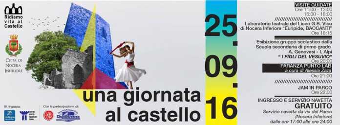 Tutto pronto per la terza edizione de “Una giornata al Castello”. L’evento, organizzato dall’associazione “Ridiamo Vita al Castello” e patrocinata dalla Città di Nocera Inferiore, avrà luogo domenica 25 settembre presso il castello del Parco-Palazzo Fienga che diverrà, anche per questa occasione, incubatore di storia, arte e cultura. Le porte del maniero saranno aperte sin dal mattino: dalle ore 11.00 alle 13.00 e dalle 15.00 alle 18.00 i cittadini, turisti, avranno l’opportunità di essere accompagnati gratuitamente dai nostri volontari, alla scoperta della storia millenaria del bene simbolo della città attraverso visite guidate gratuite.