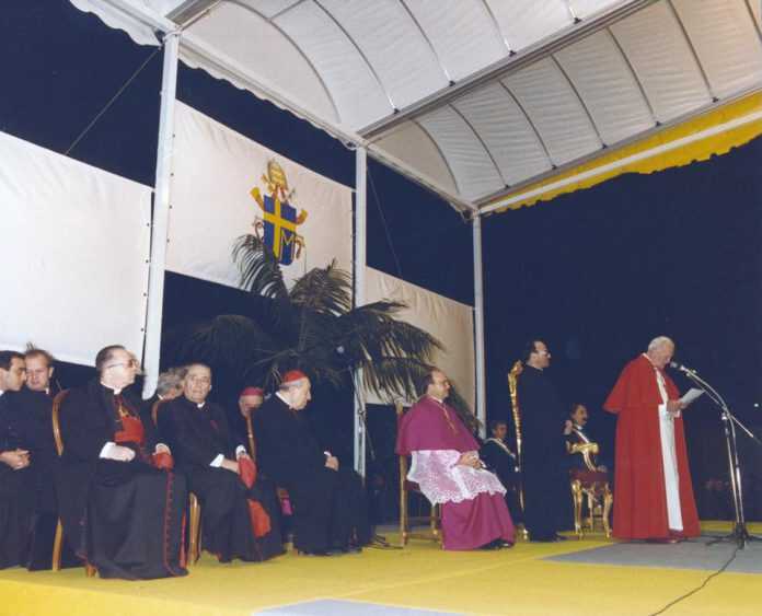 Era un lunedì. Lo Stadio San Francesco si riempì fin dal primo pomeriggio. Non aspettava una partita. Aspettava un Papa. Quel giorno a Nocera e nell’Agro arrivò Giovanni Paolo II, era quasi metà novembre del 1990. Gli fu fatta fare una sorta d’inaugurazione all’ospedale. Le strade, poche ore prima, erano state asfaltate a tempo di record. Il sindaco era Franco D’Angelo, il vescovo era Gioacchino Illiano. Ci fu l’annullo filatelico. E lo stadio era pieno, fattoda ragazzi e meno ragazzi, gente dell’Azione Cattolica e dei Gruppi di Preghiera. Ma anche cristiani semplici, gente che amava quel pontefice polacco già provato dall’attentato e da qualche acciacco ma ancora nel pieno della sua missione. Sono passati ventotto anni, un paio di generazioni. Ma quel ricordo resta uno dei più belli per una città che non guarì definitivamente dalla malattia – un mese dopo ci fu un noto omicidio camorristico che fece scorrere altro sangue – e tuttavia cercò di trarre lo spunto per giorni più sereni. Ecco il discorso di Giovanni Paolo II di quel giorno: “Quando si opera per la gloria di Dio e per il bene dell’uomo, il Signore non fa mancare il suo aiuto e la sua efficace benedizione. Si attua, in tal modo, la vocazione propria del cristiano, che è quella di vivere in costante comunione con Cristo e con i fratelli, vincendo l’individualismo e la tentazione di vedere nel prossimo un avversario più che un fratello da aiutare e “da rendere partecipe . . . del banchetto della vita, a cui tutti gli uomini sono egualmente invitati da Dio” (Sollicitudo rei socialis, 39). Il discepolo del Signore è chiamato a rispettare in tutti, anche in chi gli è ostile, l’immagine divina, secondo la quale siamo stati creati e redenti. Carissimi fratelli, siate sempre coraggiosi nel perdono, perseveranti nell’amore, audaci e generosi nel servizio! Vincete la tentazione dell’indifferenza e dell’odio con concreti gesti di solidarietà fra di voi, fra le vostre famiglie, nella vostra città tutta. Ispirati e sostenuti da una fede profonda, voi recherete così un efficace contributo alla soluzione dei gravi problemi, più volte sottolineati nei vostri convegni. E potrete, così, lottare validamente contro ogni pericolo di disgregazione del tessuto sociale. Potrete anche offrire ai giovani convincenti motivi per guardare con più fiducia verso il loro futuro. Non perdete mai la vostra identità di discepoli del Signore, non cedete ai richiami dell’interesse particolaristico, non cadete nell’idolatria del potere, del successo e del denaro! Siate piuttosto animati da fede profonda e rendetevi disponibili per un servizio che richiede spirito religioso autentico e operoso, che esige formazione adeguata, convinzioni profonde, testimonianza coerente. Diffondete, allora, con la vostra esistenza, ispirata al Vangelo, la salvezza cristiana in tutta la realtà umana e sarete costruttori di una società più giusta e fraterna.Vi incoraggio, carissimi fratelli e sorelle, a proseguire su questa strada. Continuate a ricercare la via della verità, della giustizia e dell’amore, non lasciandovi mancare il reciproco sostegno grazie a un dialogo sincero e costruttivo. Mantenete tra voi la carità e abbiate cura del bene di tutti. Faccio miei, infine, i sentimenti della preghiera che è stata composta in occasione di questa visita. Chiedo al Signore con voi e per ciascuno di voi che tutte le componenti laiche e religiose della vostra comunità impegnino nel nome di Cristo le loro energie per una risposta concreta e indilazionabile ai mille volti della violenza, della disoccupazione, della devianza, assillo quotidiano di queste fertili e operose terre. La Vergine protettrice della vostra città vigili su tutti voi. Il vostro patrono, san Prisco, e il grande maestro sant’Alfonso de’ Liguori vi aiutino a portare a compimento i vostri buoni propositi.”