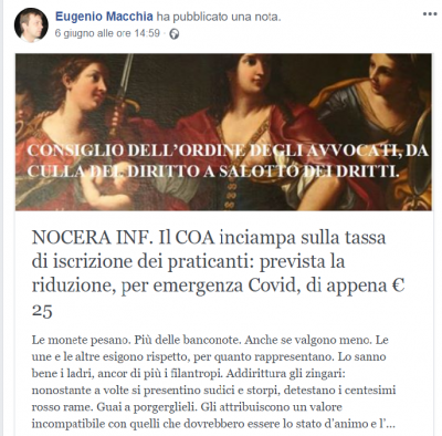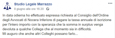 Il Consiglio dell’Ordine degli Avvocati di Nocera Inferiore ha disposto la riduzione della tassa d’iscrizione all’albo. Ha previsto un taglio del 30%, per far fronte alla crisi determinata dalle misure messe in campo per contenere l’emergenza epidemiologica: senza alcuna distinzione tra cassazionisti, avvocati e praticanti. Questo, nel dettaglio, l’intervento immaginato per compensare i mancati incassi causati dalla parziale sospensione dell’attività: gli avvocati cassazionisti verseranno € 155,00, invece di € 205,00; gli avvocati non cassazionisti € 105,00, invece di € 155,00; i praticanti, cioè i giovani laureati che si apprestano all’esercizio della professione, € 50,00 invece di € 75. Il prossimo febbraio, l’assemblea sarà chiamata ad esprimersi sulla bontà della proposta e potrà confermarla, modificarla o bocciarla. Non tutte le toghe nocerine hanno apprezzato il taglio lineare. C’è chi avrebbe preferito ancorarlo ai redditi del singolo avvocato, esentando i giovani, spesso ancora sostenuti dalle famiglie, prevedendo inoltre un contributo di solidarietà di cui potrebbero farsi carico i più facoltosi. Tra coloro che non hanno gradito si segnalano l’avvocato Cristiano Marrazzo, che si è detto pronto a versare l’intero importo, e il collega giornalista Eugenio Macchia, i quali hanno affidato a note pubblicate su facebook la propria riflessione.