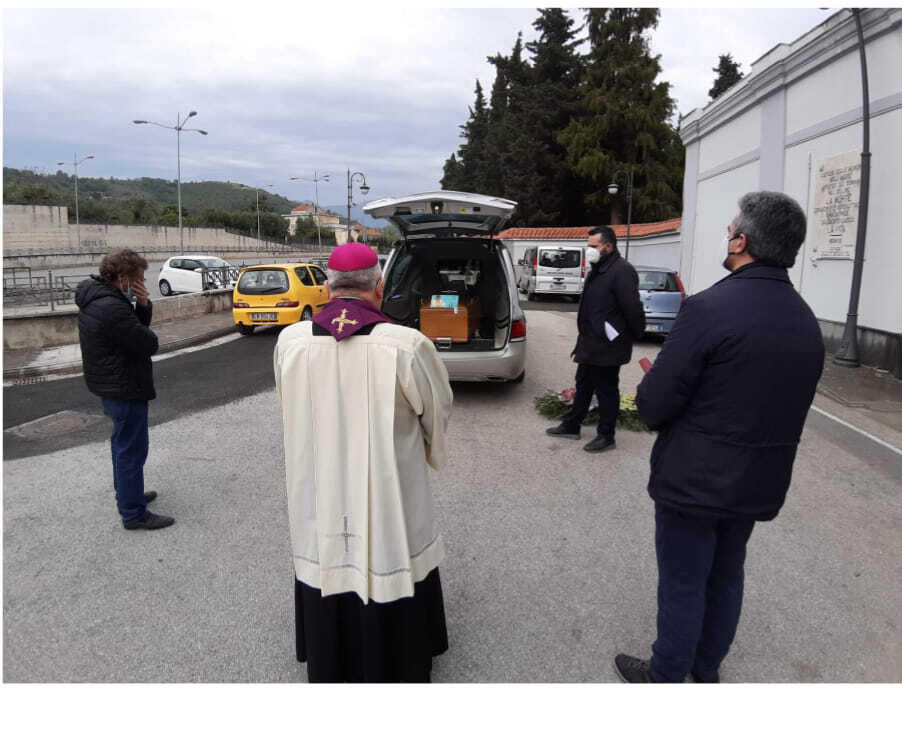 Il Vescovo, durante la benedizione, ha detto: «Sorelle e fratelli, salutiamo in questo momento, diciamo arrivederci in paradiso, il nostro fratello sacerdote Aniello. Abbiamo pregato, abbiamo atteso, con lui abbiamo sofferto, poi siamo entrati nel mistero del Venerdì Santo. Abbiamo ripetuto con Gesù: Padre, se possibile allontana questo calice. Però non la mia, sia fatta la tua volontà. Nel mistero del Sabato Santo, mentre noi stavamo celebrando la liturgia del silenzio, il Signore lo ha preso con sé per fargli celebrare la sua Pasqua».