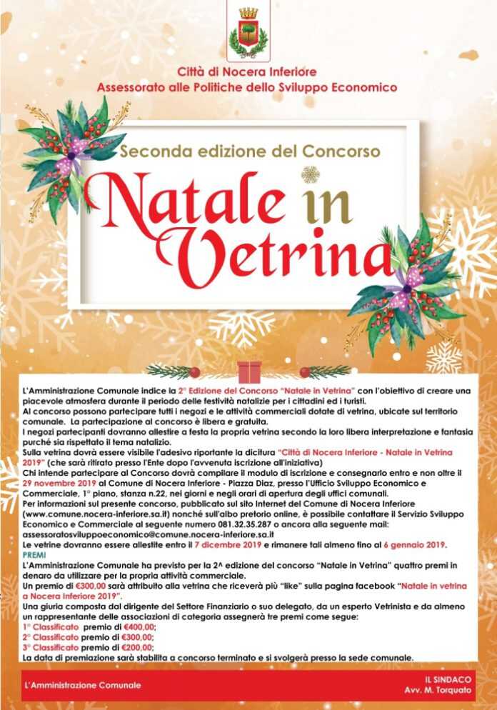 di partecipare alla seconda edizione del Concorso “NATALE IN VETRINA” organizzato in occasione delle festività natalizie dall’Amministrazione Comunale di Nocera Inferiore.