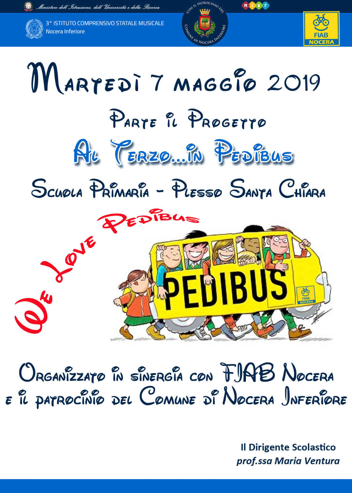 Parte il Progetto al Terzo…in Pedibus. L’esempio arriva dalla scuola, in particolari dai piccoli e dai loro genitori, oltre che dagli insegnanti.Il piedibus o pedibus è una forma di trasporto scolastico. Gli alunni vengono accompagnati a piedi a scuola da adulti con le stesse modalità (percorsi, fermate) dello scuolabus. In pratica, i bambini, anziché prendere l’autobus o lo scuolabus, alla fermata si aggregano ad una comitiva guidata da alcuni addetti giungendo fino a scuola, e compiendo il percorso inverso ritornando a casa.