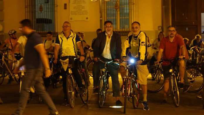 Di notte la bici ha tutto un altro effetto, rende diversi i luoghi se non le persone, di sicuro c’è un attimo di tregua del traffico. Secondo appuntamento in città per la passeggiata in bici dopo il tramonto, l’itinerario di stasera prevedeva Vescovado e zone limitrofe. Considerando il successo dell’Anello Verde, con tanto di raddoppio aggiungendo il sabato alla domenica, l’estate dei nocerini a due ruote prosegue all’insegna di una rivalutazione finalmente avvenuta di un mezzo di locomozione che si coniuga con sport, salute e zero inquinamento.